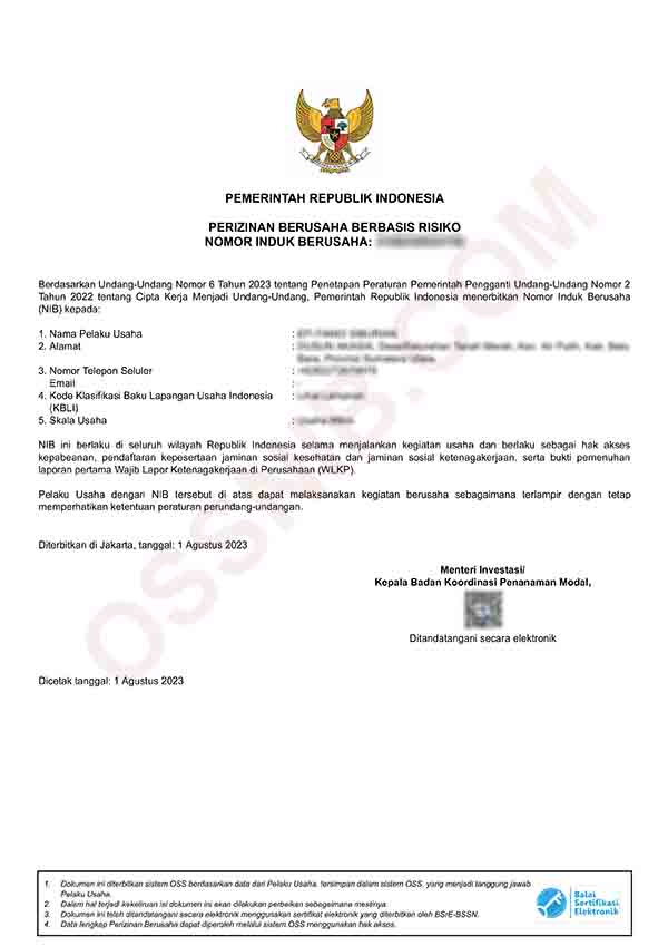 NIB (Nomor Induk Berusaha) adalah kode identifikasi unik yang diberikan kepada setiap usaha atau bisnis di Indonesia. NIB merupakan bagian dari sistem perizinan berusaha yang bertujuan untuk mempermudah dan menyederhanakan proses perizinan bagi para pelaku usaha. Dengan NIB, pelaku usaha dapat mengurus berbagai izin usaha secara terintegrasi melalui satu pintu, yang dikenal sebagai OSS (Online Single Submission). NIB memuat informasi mengenai jenis usaha, lokasi, nama perusahaan, kepemilikan, dan izin-izin yang diperlukan untuk beroperasi. Sistem NIB dan OSS diciptakan untuk mendorong investasi, meningkatkan kemudahan berusaha, serta mempercepat pertumbuhan ekonomi di Indonesia.
