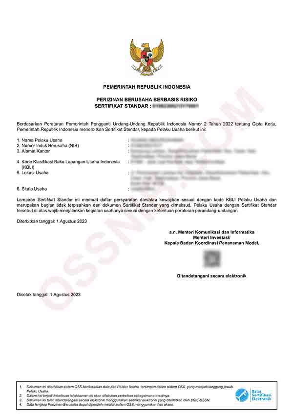 Usaha Mikro dan Kecil (UMK) dengan Tingkat Usaha Risiko Rendah diberi kemudahan berupa NIB yang sekaligus berlaku sebagai perizinan tunggal, termasuk Standar Nasional Indonesia (SNI) dan Sertifikasi Jaminan Produk Halal (SJPH).